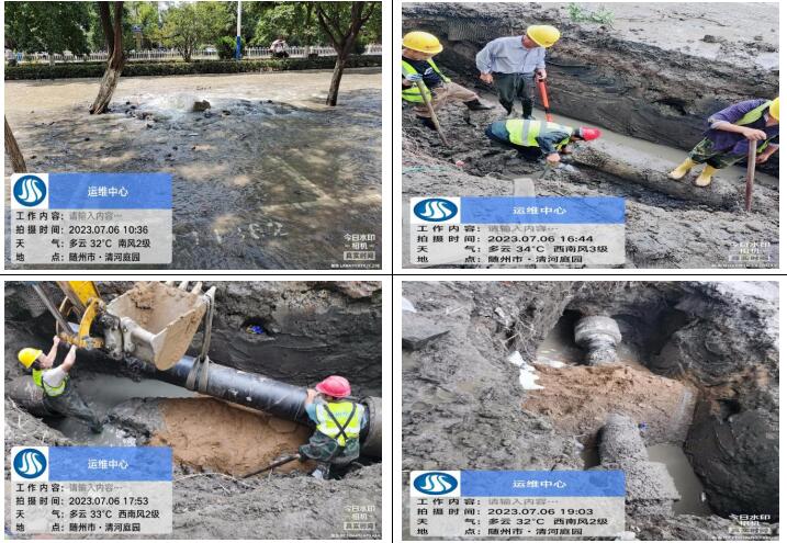 7月6日上午10點(diǎn)20分,客服人員接到群眾的熱線電話,告知清河路清河庭院附近路面大量跑水,運(yùn)維中心搶修人員接到消息迅速前往,十五分鐘到達(dá)現(xiàn)場(chǎng),通過(guò)專業(yè)技能和判斷,確定為DN400主管道爆破,測(cè)漏人員立即協(xié)助精準(zhǔn)定位漏點(diǎn),盡量減少開(kāi)挖面,為搶修爭(zhēng)取時(shí)間,該管道會(huì)直接影響周邊黃龍五隊(duì)、清河庭院、東方小區(qū)、楚苑小區(qū)、雙橋家具大市場(chǎng)等小區(qū)和企業(yè)大面積水小或停水??崾铍y耐,為盡快解決群眾用水問(wèn)題,維修人員在35°高溫下連續(xù)奮戰(zhàn)8小時(shí),于當(dāng)晚7點(diǎn)30分恢復(fù)正常供水,及時(shí)避免了周邊居民下班后正常生活用水的問(wèn)題。