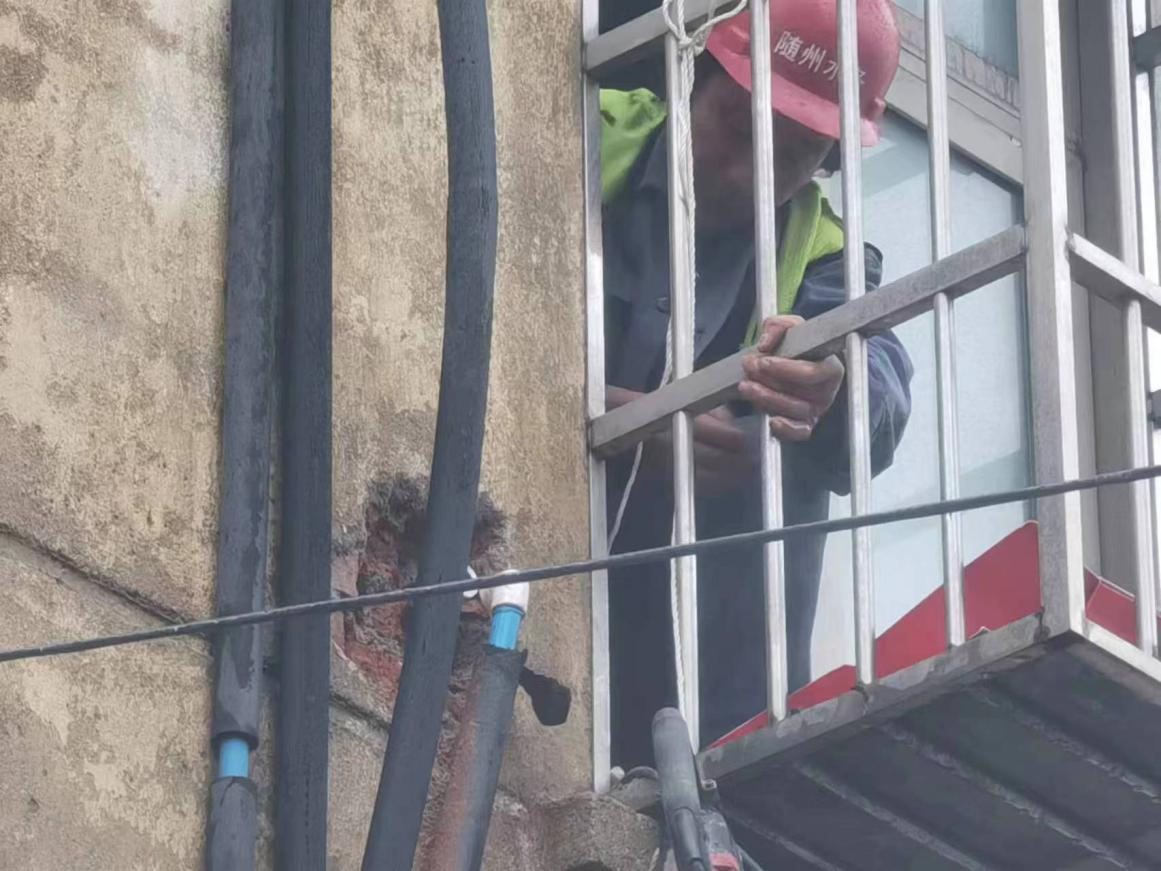 “這里水管漏了,外面的墻都打濕了,麻煩你們快來(lái)看看啊!”3月20日上午8點(diǎn)30分,建設(shè)工程公司接到市民的求助電話(huà),稱(chēng)他家墻外有根水管在向外冒水。運(yùn)維中心牽頭人張遠(yuǎn)燈立即安排維修人員第一時(shí)間趕往現(xiàn)場(chǎng)。經(jīng)過(guò)詢(xún)問(wèn)和現(xiàn)場(chǎng)查看后,發(fā)現(xiàn)事故原因是2樓外墻進(jìn)屋處彎頭漏水,但該項(xiàng)維修內(nèi)容本不屬于公司的維修范疇。維修人員看到無(wú)助的老人,便毫不猶豫地爬上2樓陽(yáng)臺(tái),在狹窄的空間內(nèi)艱難地為老人更換破損管件。雖然是用戶(hù)房屋內(nèi)部管道漏水,水務(wù)人本著想用戶(hù)所想,急用戶(hù)所急的服務(wù)精神,不計(jì)較、不推諉的幫助用戶(hù)及時(shí)解決漏水難題。