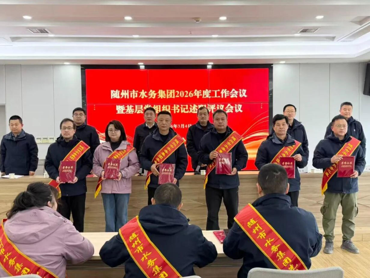 3月2日,隨州水務(wù)集團(tuán)召開2026年工作會(huì)議暨基層黨組織書記述職評(píng)議會(huì)議。會(huì)議深入學(xué)習(xí)貫徹上級(jí)精神,全面總結(jié)2025年工作,表彰先進(jìn)典型,系統(tǒng)部署2026年重點(diǎn)任務(wù),動(dòng)員全體干部職工實(shí)干篤行、奮勇爭(zhēng)先,奮力開創(chuàng)集團(tuán)高質(zhì)量發(fā)展新局面。集團(tuán)黨總支書記、董事長(zhǎng)桂維國(guó)出席會(huì)議并講話,集團(tuán)黨總支副書記、總經(jīng)理嚴(yán)賢江主持會(huì)議。